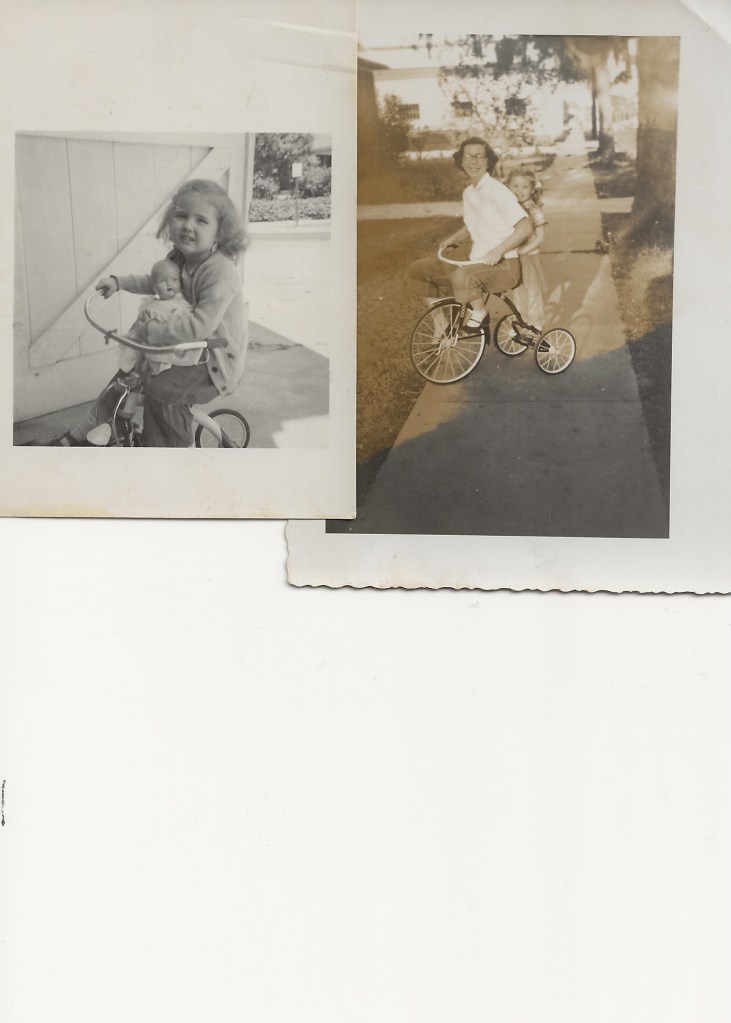 My earlier memories weren’t as clear until I noticed the sidewalks covered by live oaks in the old towns. Suddenly I remembered playing under those trees when I was very young. I played every day in the black sand behind my grandparents’ house with a child’s tea set that had belonged to my aunts. My mother and I were living there temporarily because my parents had split up, my mother and I returning from Alabama. We came on the train.